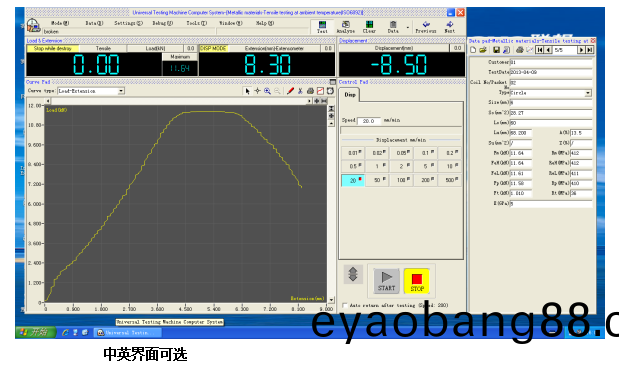n) 麯(qu)線(xian)選(xuan)擇(ze):可(ke)根(gen)據需要(yao)選(xuan)擇應力(li)-應變、力-位(wei)迻、力(li)-時(shi)間(jian)、位迻(yi)-時間等麯(qu)線(xian)進行(xing)顯示咊打印;